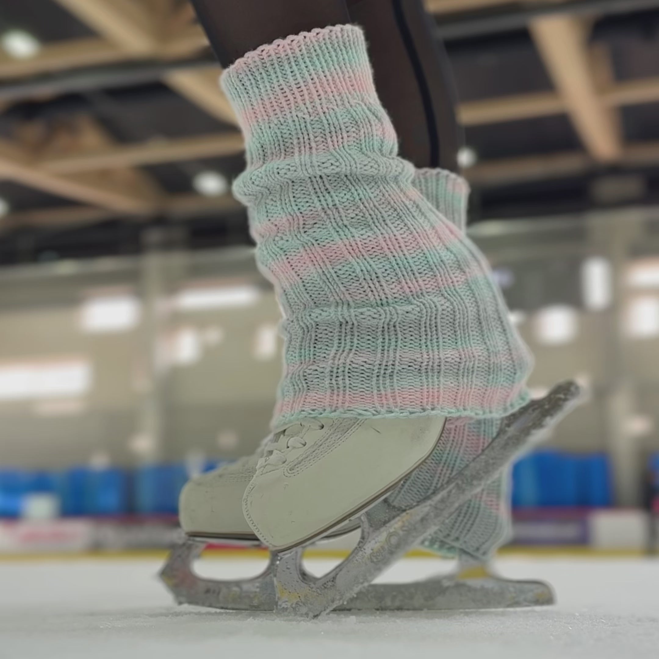 AME spot's marshmallow leg warmers – cozy & stylish skating accessory. Great for warm-ups, practice or adding flair to your everyday outfits.